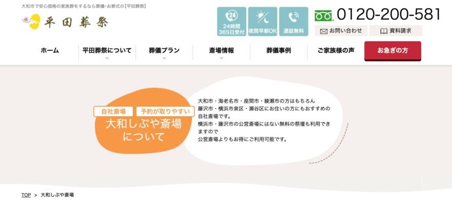 | 直営・提携葬儀場 | 【大和しぶや斎場】神奈川県大和市渋谷7-3-5 |